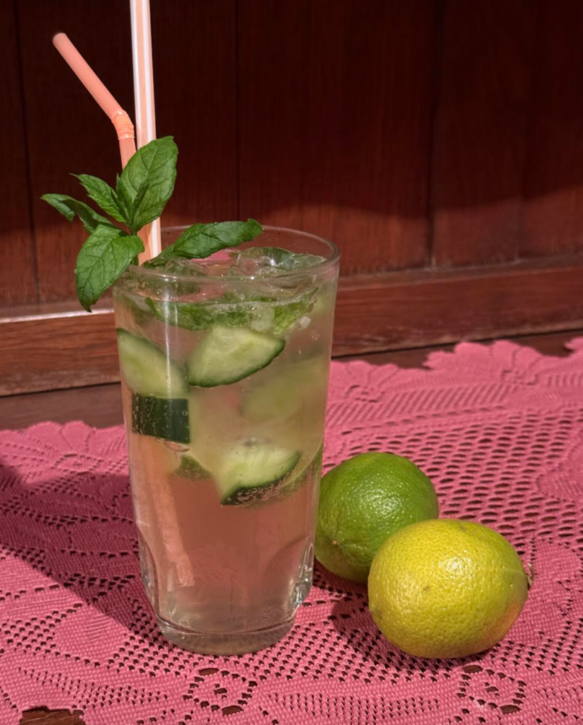 Muserra kurkku, lime ja minttu kevyesti lasiin survimella tai vaikka puulastan varrella, mitä vain keittiöstä löytyy.