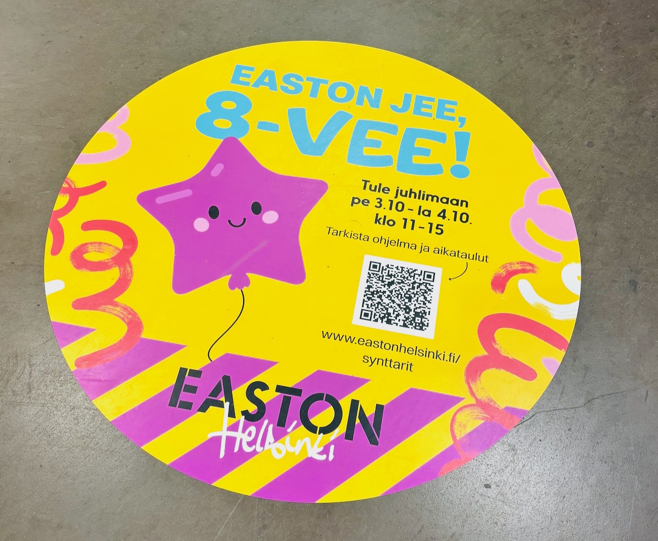 Easton Helsinki viettää 8-vuotissyntymäpäiviään lokakuun ensimmäisenä viikonloppuna ja juhlia riittää kahden päivän ajan. Perjantaina nautitaan tunnelmasta senioreille suunnatun ohjelman parissa ja lauantaina iloitaan lasten tahtiin. Luvassa on kahvia, musiikkia, pajoja, bingoa ja paljon hauskaa tekemistä koko perheelle. Tule mukaan juhlimaan kanssamme!