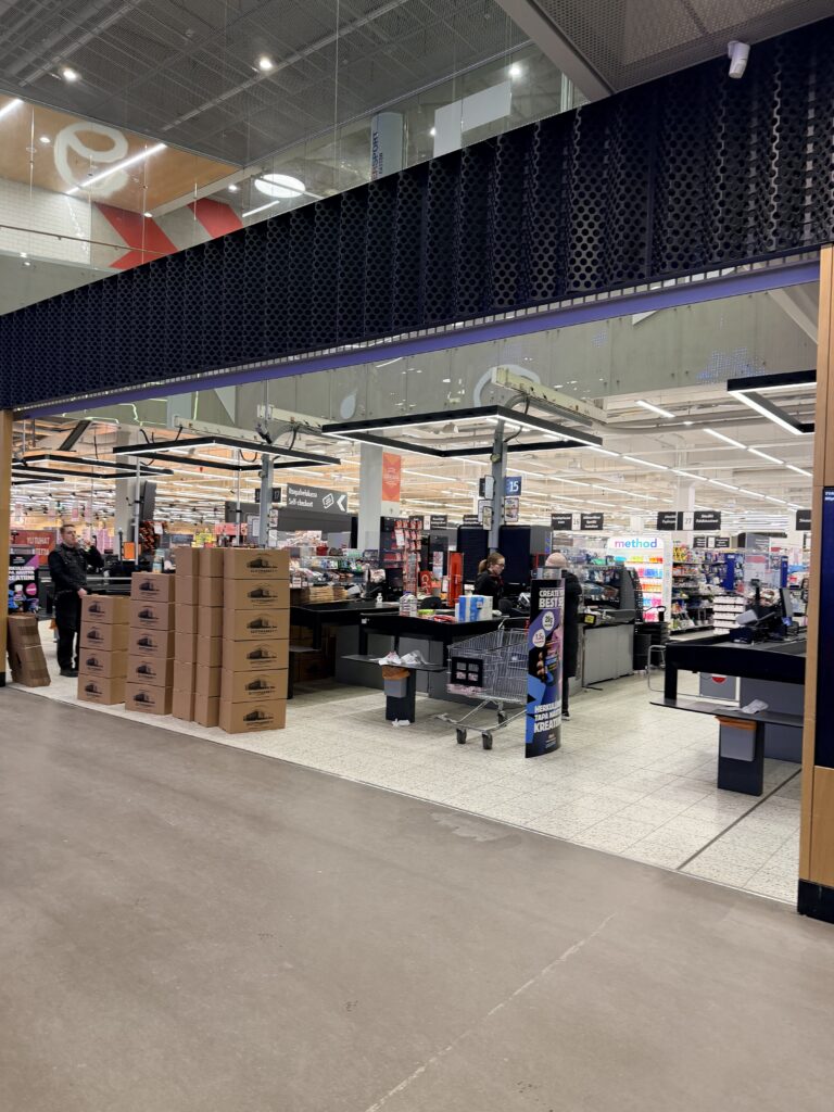 Muiden liikkeiden suljettua kellon ympäri palvelevassa K-Citymarket Eastonissa tehdään vielä viikonlopun ruokaostoksia, mutta väkeä on huomattavasti vähemmän kuin pari tuntia sitten.