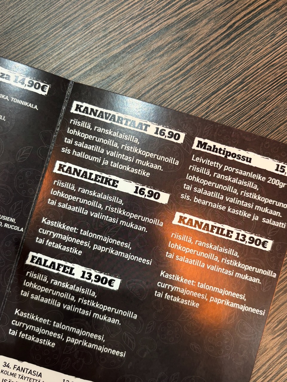 Listan uutuuksiin kuuluvat myös leikkeet, kuten Mahtipossu, jossa 200 gramman leivitetty porsaanleike tarjoillaan bearnaisekastikkeen kanssa. Lisäkkeen voi valita oman maun mukaan esimerkiksi salaatista, riisistä, ranskalaisista, lohkoperunoista tai ristikkoperunoista. Kanaleike tarjoillaan samaan tapaan itse valitun lisäkkeen kanssa, ja kastikkeeksi voi valita talon majoneesin, currymajoneesin, paprikamajoneesin tai fetakastikkeen.