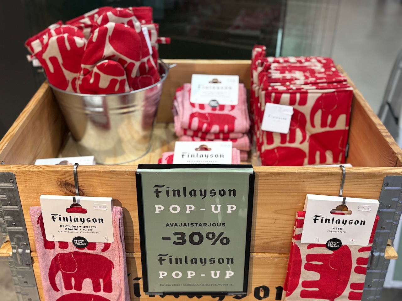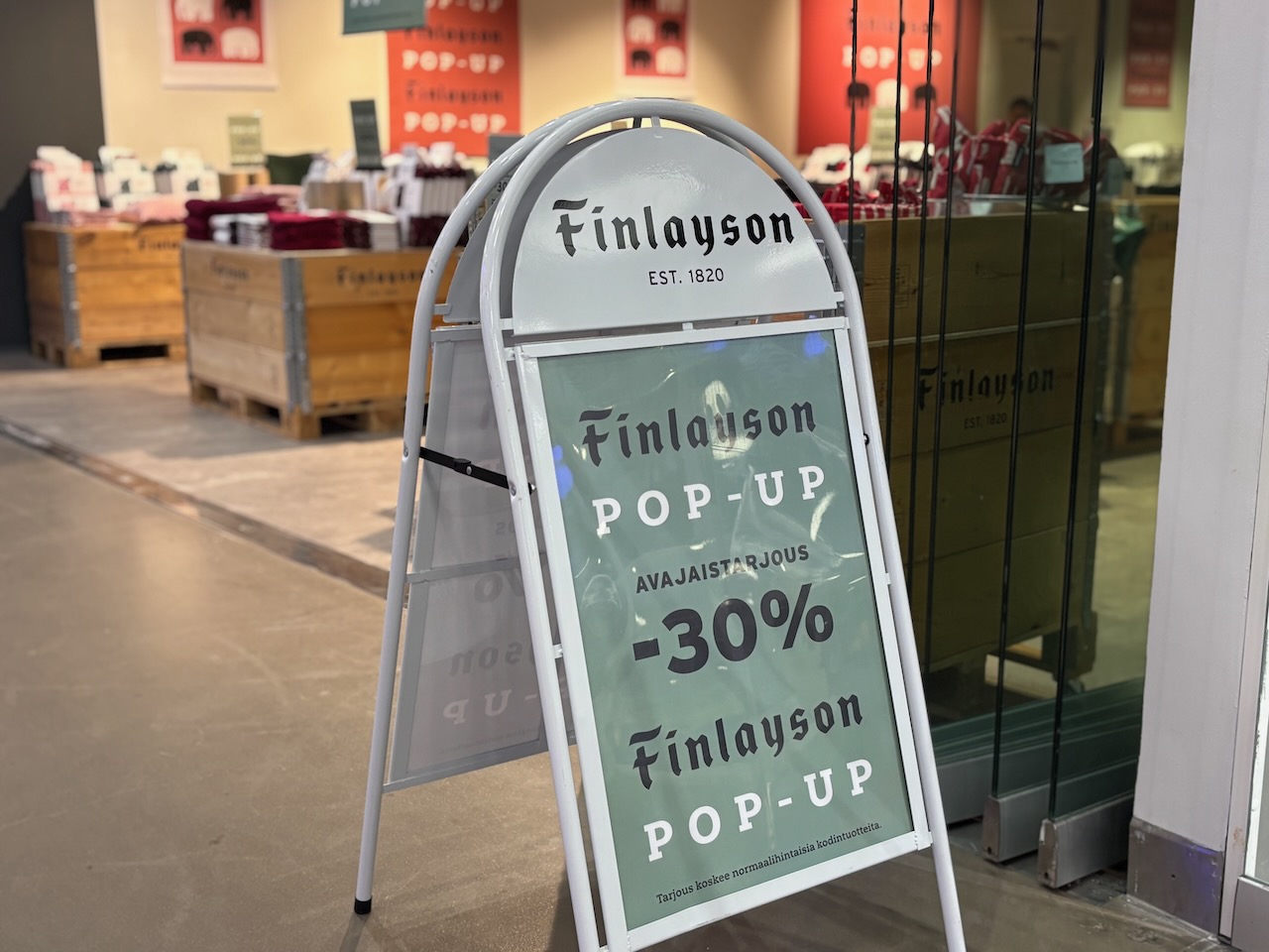 Finlayson pop-up myymälä on auki Eastonissa, uudessa paikassa