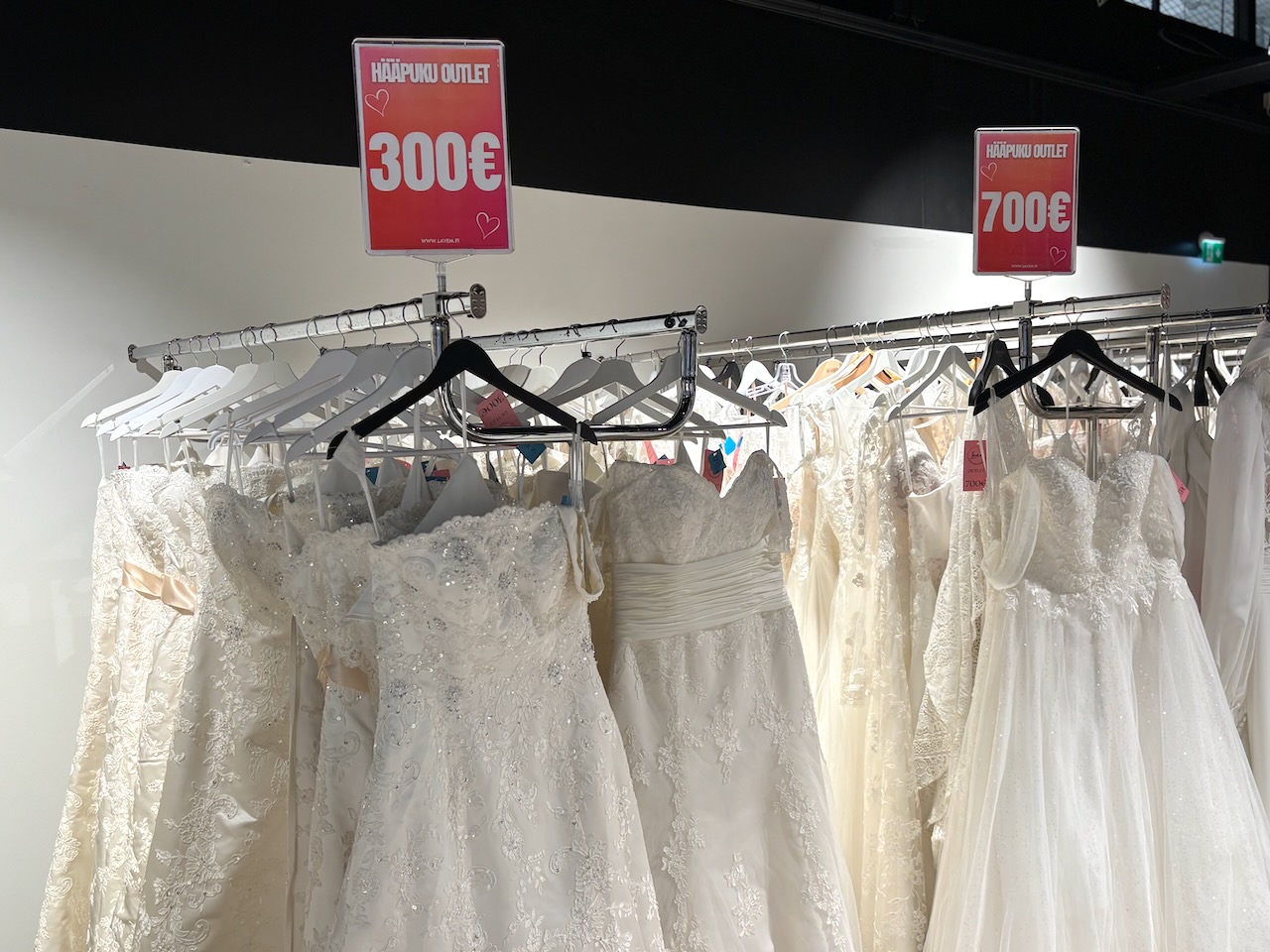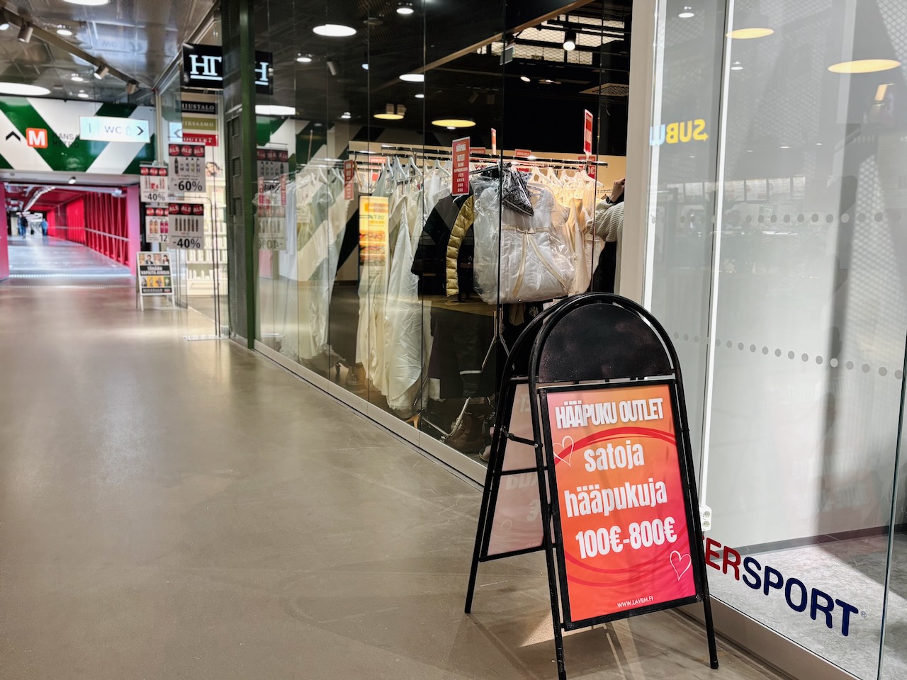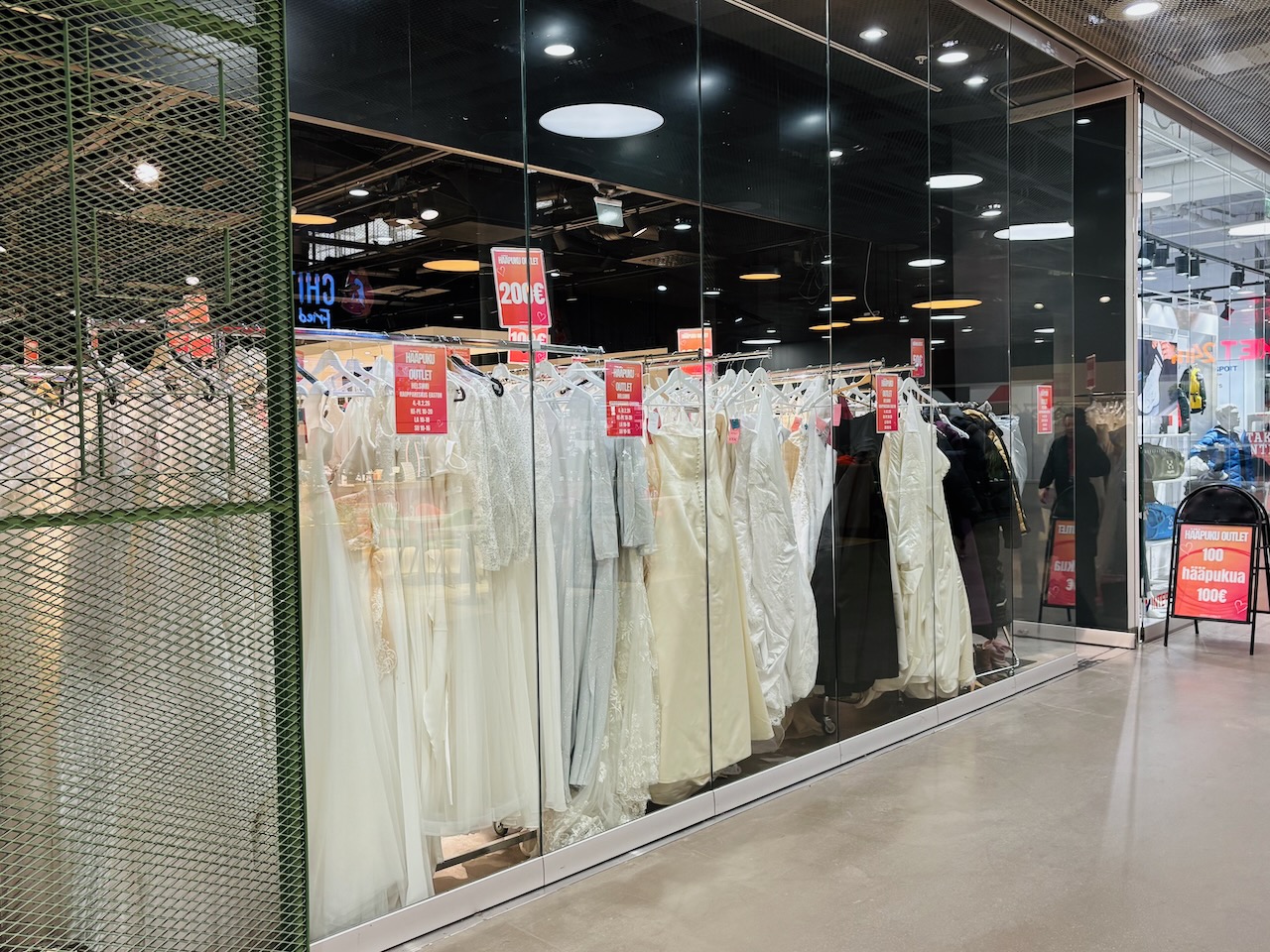 Hääpuku Outlet löytyy Eastonin ensimmäisestä kerroksesta, Intersport Eastonin vierestä.