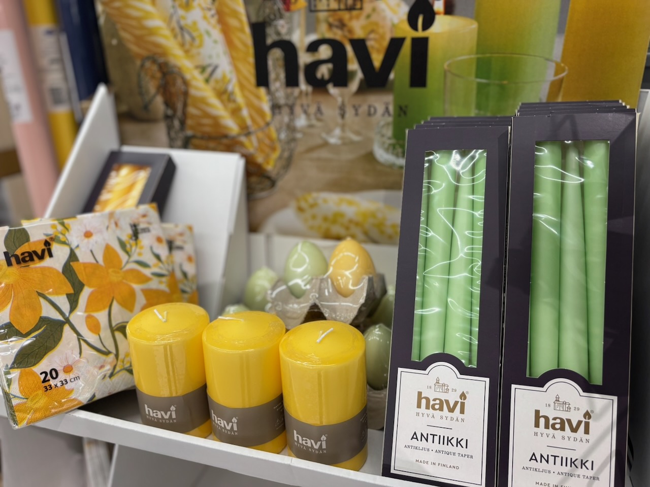 Eastonin Cittarista löydät inspiroivan valikoiman pääsiäiskukkia ja koristeita. Narsissit, tulppaanit ja valmiit kukka-asetelmat tuovat kotiin kevään tunnelman helposti. Uudistunut kukkaosasto palvelee heti sisääntulon yhteydessä ja sen väreissä loistaa nyt keltainen, valkoinen ja oranssi. Kattaukseen löytyy kauniita Havin kynttilöitä ja lautasliinoja, joiden värit ja kuosit viimeistelevät juhlapöydän ilmeen. Esimerkiksi upean väriset keltaiset tai vihreät kynttilät sekä munanmuotoiset kynttilät tekevät pääsiäispöydästä juhlapyhään sopivan.