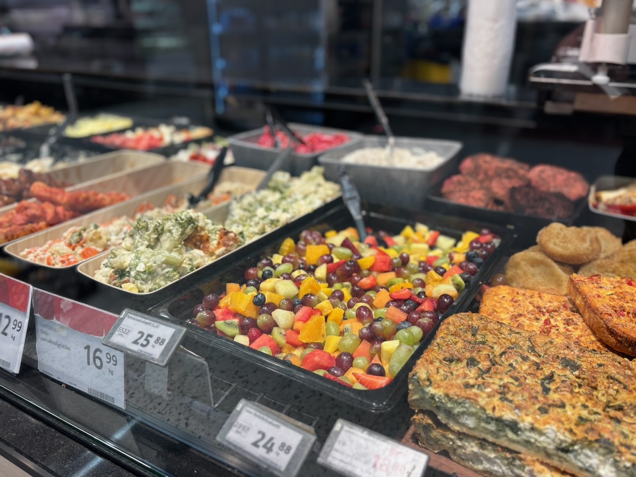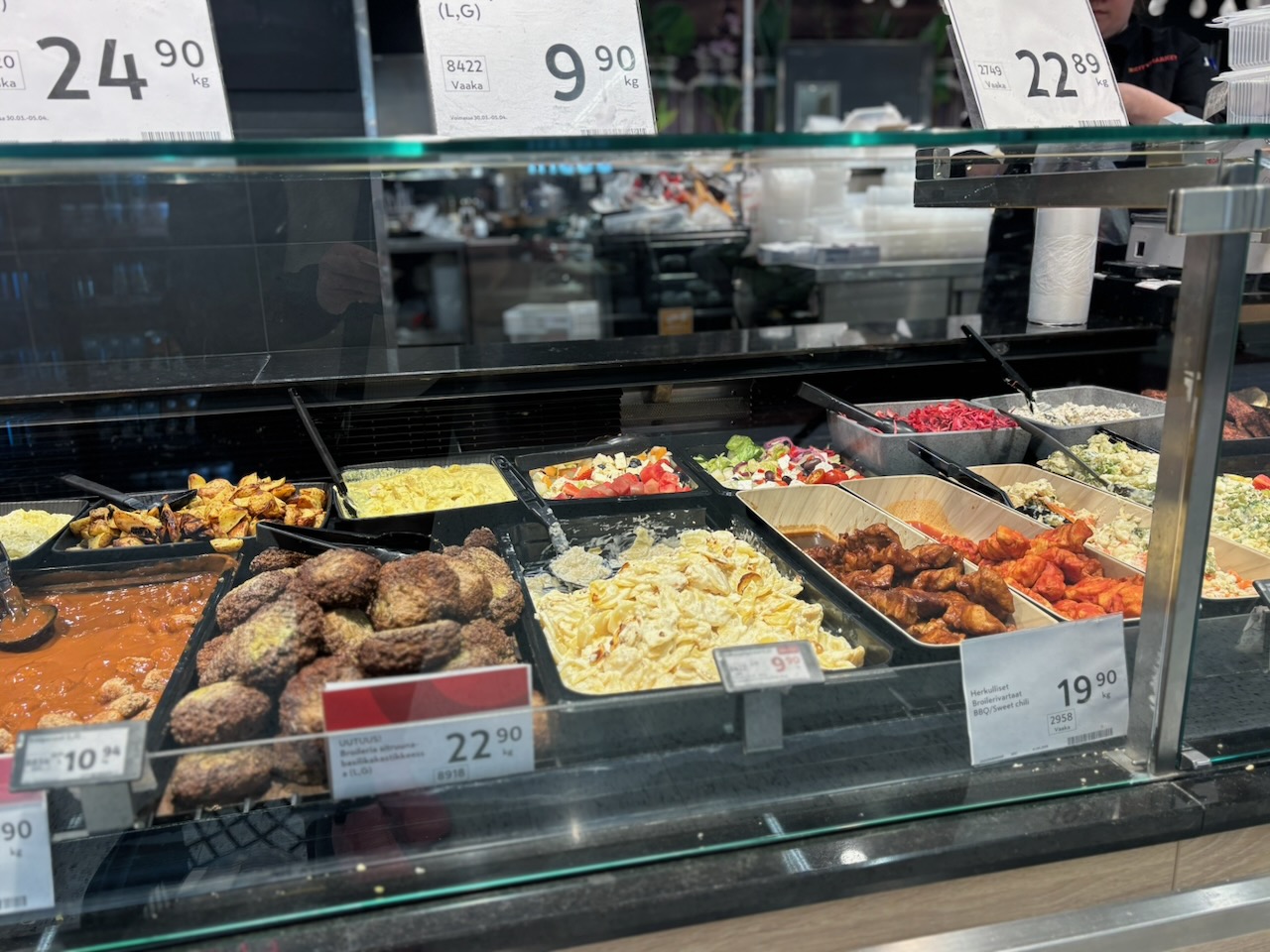 Kotikeittiön palvelutiskiltä saat loppuviikon ajan edullisesti valkosipulikermaperunoita, erilaisia salaatteja sekä esimerkiksi lammaspullia punaviinikastikkeessa. Aina ei ole siis pakko kokata kaikkea alusta saakka vaan voit helposti tapa rakentaa herkullisen kokonaisuuden myös kotikeittön valikoimasta.
