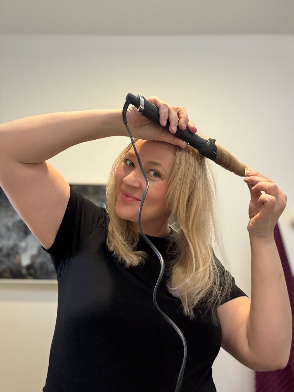 Omassa käytössäni on Hiustalosta hankittu GHD:n Helios-sarjan hiustenkuivaaja, joka on todella näppärä. Se on kevyt mutta tehokas, kuivaa nopeasti eikä ole kovaäänisin kuivain mitä olen käyttänyt. Luottokäytössäni on myös GHD Curve -muotoilupuikko, johon olen siirtynyt suoristusraudalla tehdyistä kiharoista. Nykyään teen aina kiharani GHD Curvella, sillä saan sillä tehtyä lainekampauksen ihan minuuteissa. Katso Eastonin sosiaalisen median kanavista (Facebook ja Instagram) myös aiheesta tehty reels-video, niin näet lopusta, miten käytän kiharrinta.