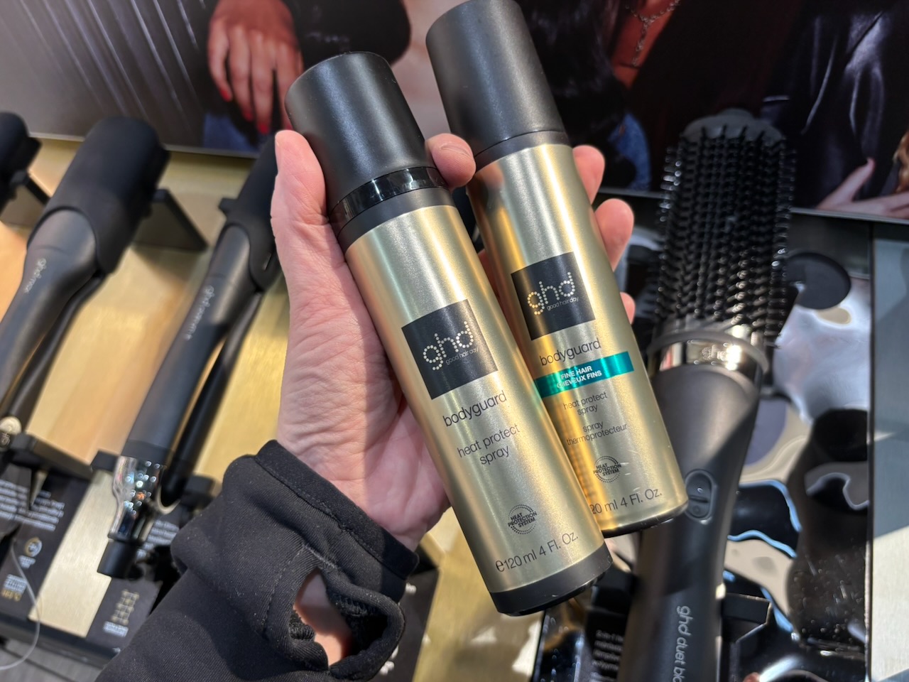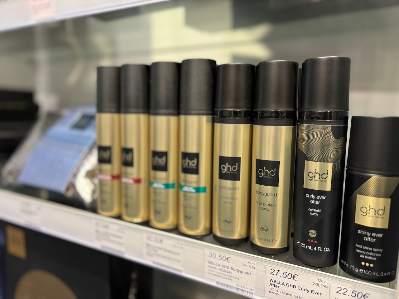 Hiustalosta löydät myös GHD:n lämpösuojasuihkeet, kuten GHD bodyguard heat protect spray -tuoteperheen. Valikoimassa on omat vaihtoehdot kaikille hiustyypeille, värjätyille hiuksille sekä ohuille hiuksille. Lämpösuoja auttaa säilyttämään hiusten kunnon ja kiillon, vaikka käytät muotoilulaitteita säännöllisesti.