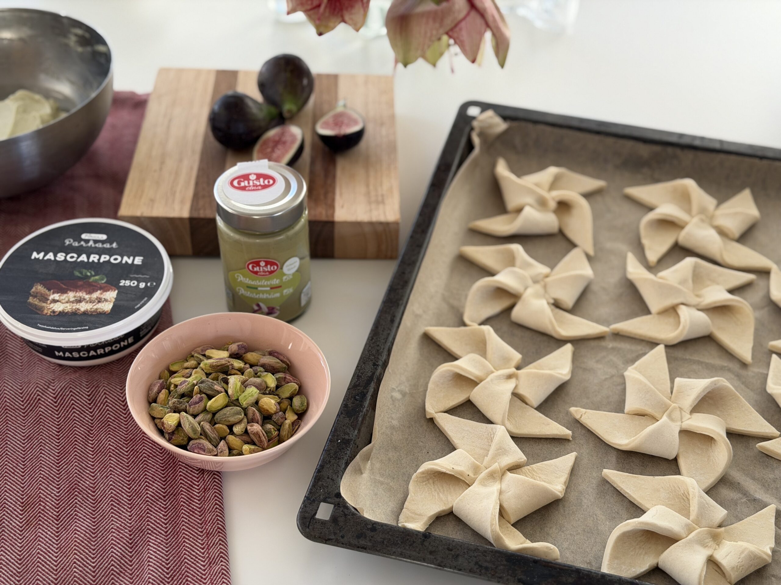 Pistaasitahnatortut sulivat suuhun! Kuohkea pistaasitahna-mascarbonetäyte kera pistaasirouheen ja suklaaraitojen oli aivan huippu. Alla rapsakka torttu ja päällä täyteläinen pistaasisuklaa. Kumpikin tarjottava, sopii täydellisesti glögin kanssa tarjoiltavaksi.
