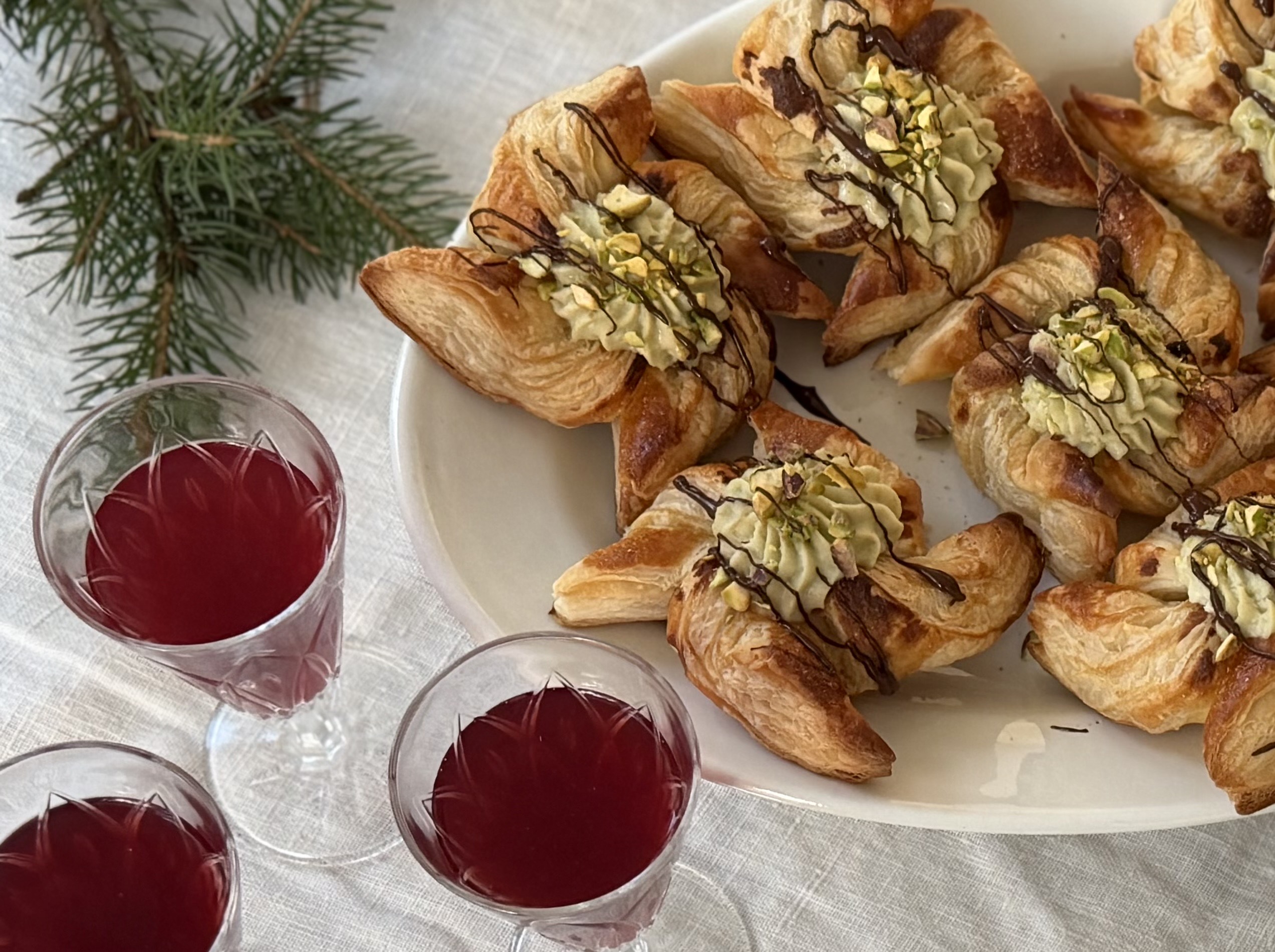 Nyt juhlitaan! Kepeät pikkujoulut syntyvät yllättävän vähällä; muutamasta helposti valmistettavasta herkusta, kauniista kattauksesta ja tunnelmasta. Tarjoa juhlavieraille hedelmällistä savukalasalaattia ja rapeita torttuja, jotka saavat ylleen reilun kerroksen pistaasitäytettä ja suklaata. Kaada glögi kauniisiin laseihin ja juhlat voivat alkaa!
