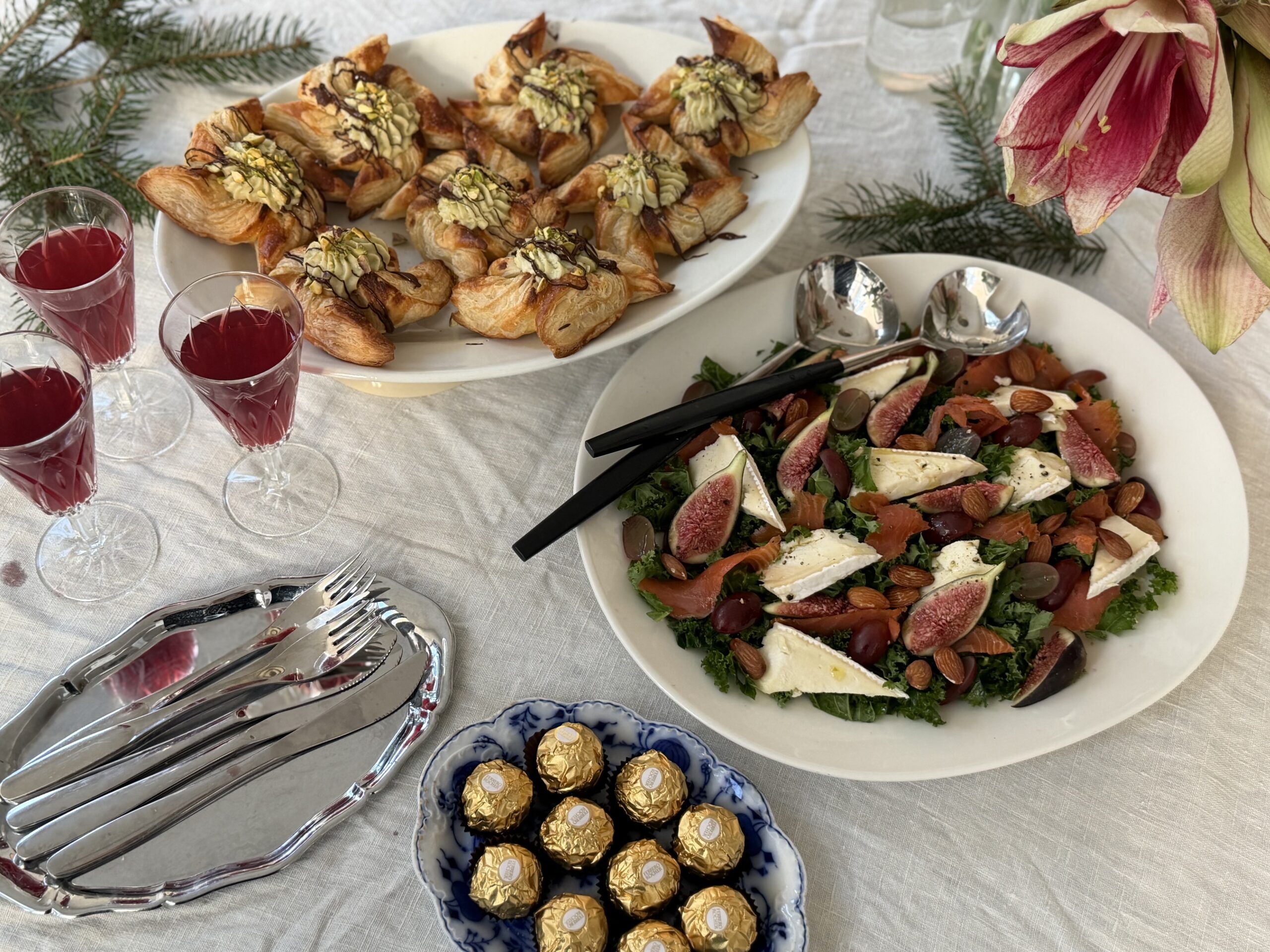 Juhlat syntyvät yllättävän vähällä, kun keskitytään muutamaan olennaiseen asiaan. Tunnelma syntyy pienistä yksityiskohdista. Silitä kaunein pellavaliina juhlapöytään ja sytytä kynttilät. Hae metsästä muutama havunoksa tai lähikaupasta leikkokukkia, jotka asettelet rennosti maljakkoon. Jo muutama simppeli tarjottava nostattaa juhlatunnelmaa. Kun pöytään nostetaan helppoja, mutta kauniita tarjottavia, syntyy fiilis, että juhla on erityinen, vaikka valmistelut ovat olleet rennon mutkattomia.