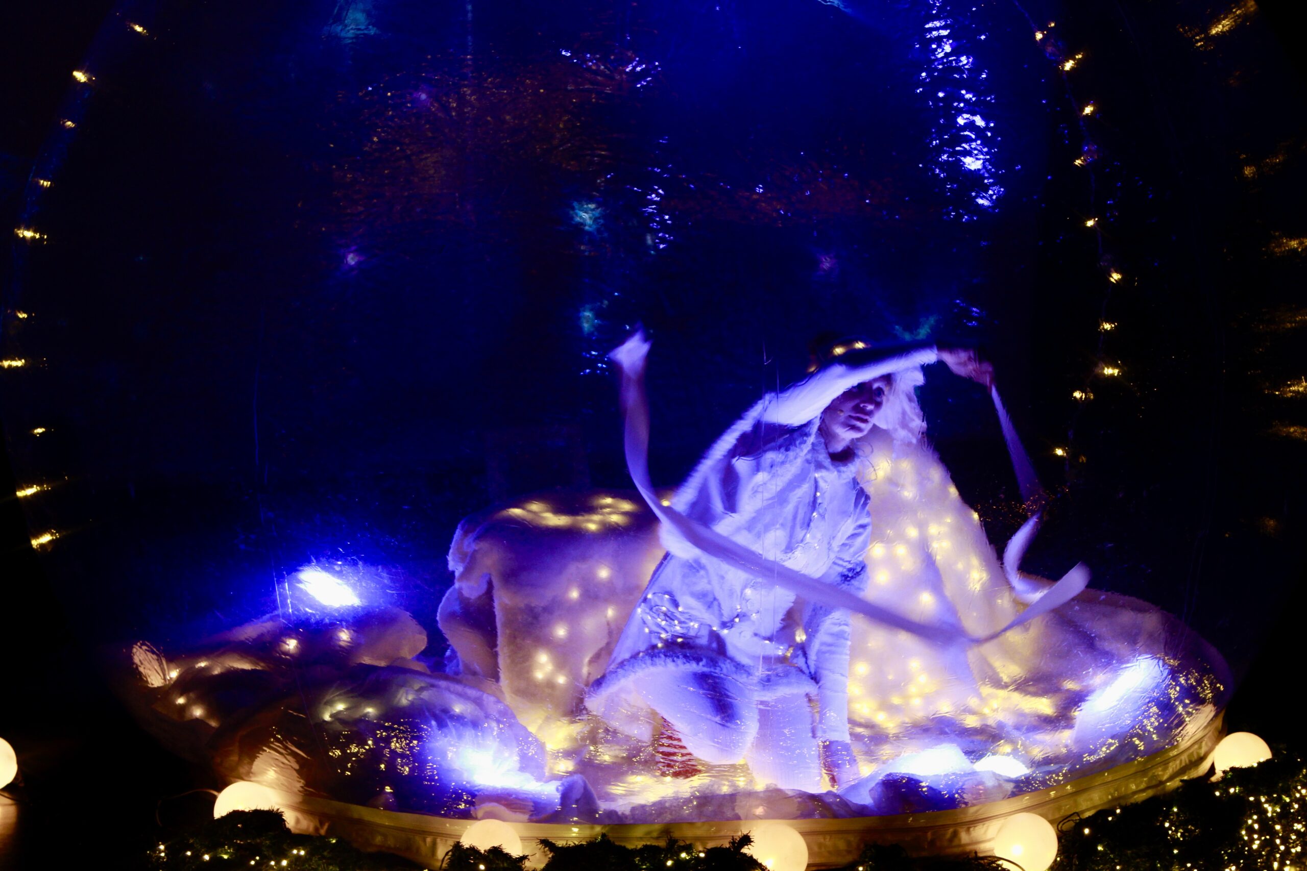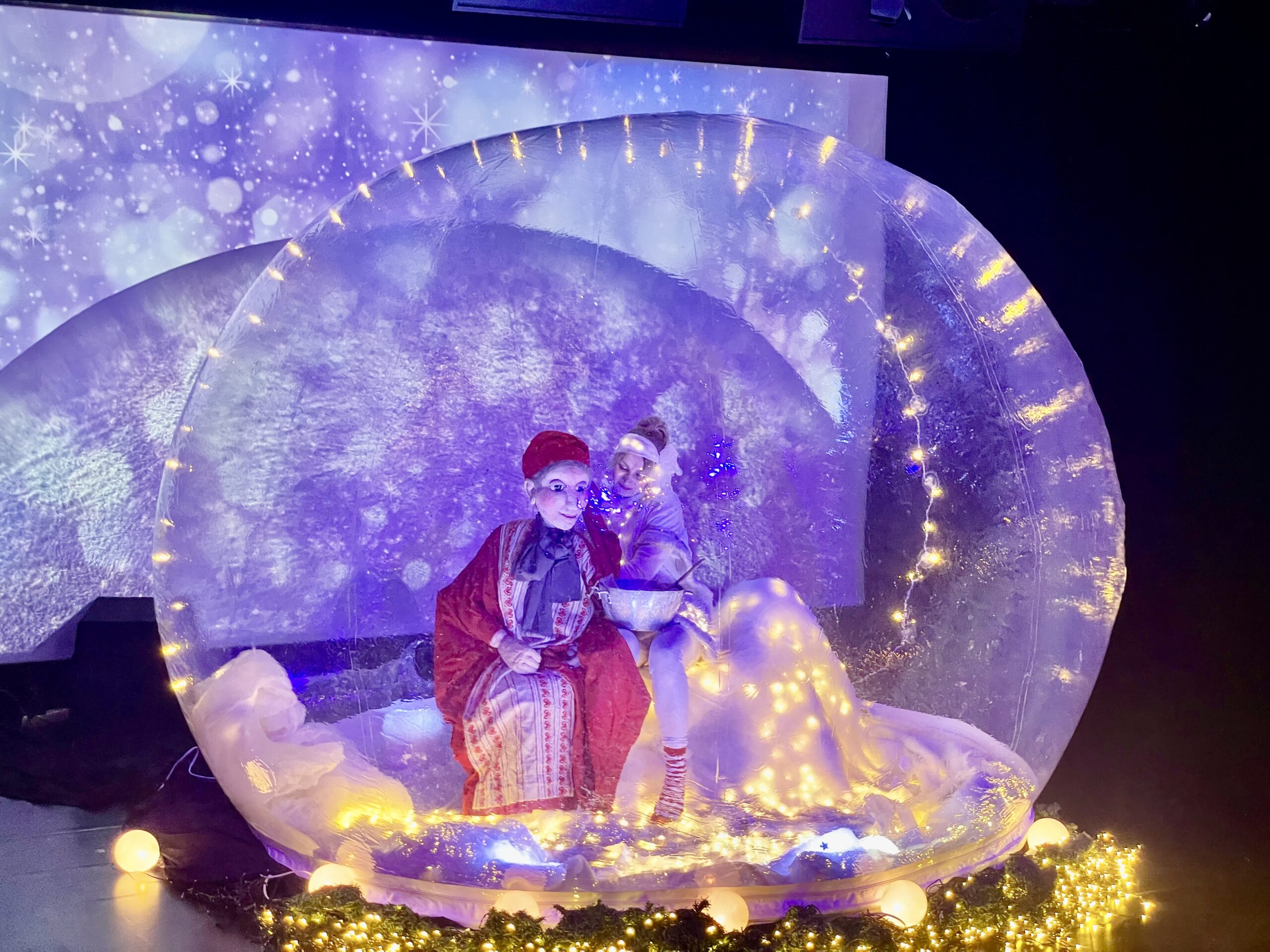 Suuri ja sädehtivä taikapallo on korona-ajan peruja. Pallon muotoista esiintymislavaa käytettiin kekseliäästi aikana, jolloin kontaktit olivat rajoitettuja. Suljettujen vuosien aikana monet perheet näkivät tonttunäytelmän useita kertoja, ja siitä ehti tulla monelle tärkeä, joulun odotukseen kuuluva traditio. Niinpä pallon sisältä jaetaan joulun taikaa tänäkin vuonna.
