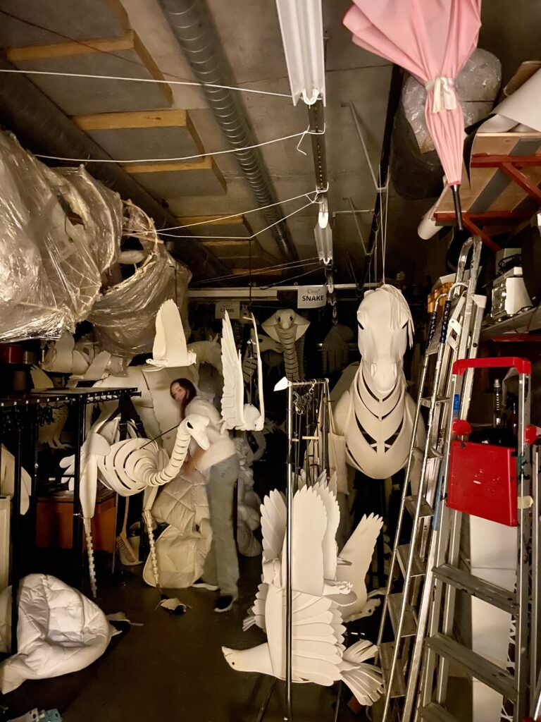 On aika kurkistaa Kulttuurimyllyn ”nukkevarastoon”, joka on täynnä valkoisia eläimiä; kirahveja, lintuja, käärmeitä, hevosia. Nuken ei siis suinkaan tarvitse olla ihmiskasvoinen.