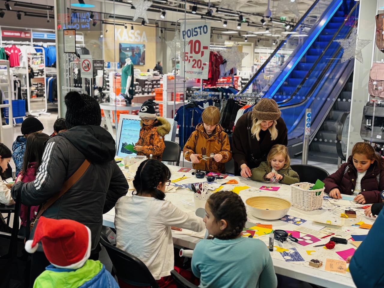 Askartelupaja oli päivän todellinen hitti. Suuri pöytä oli täynnä lähes koko päivän, ja pajassa syntyi toinen toistaan kauniimpia joulukortteja ja kuusenkoristeita niin lasten pienissä käsissä kuin aikuisten luovissa otteissa. Tunnelma oli lämmin, rauhallinen ja inspiroitunut.