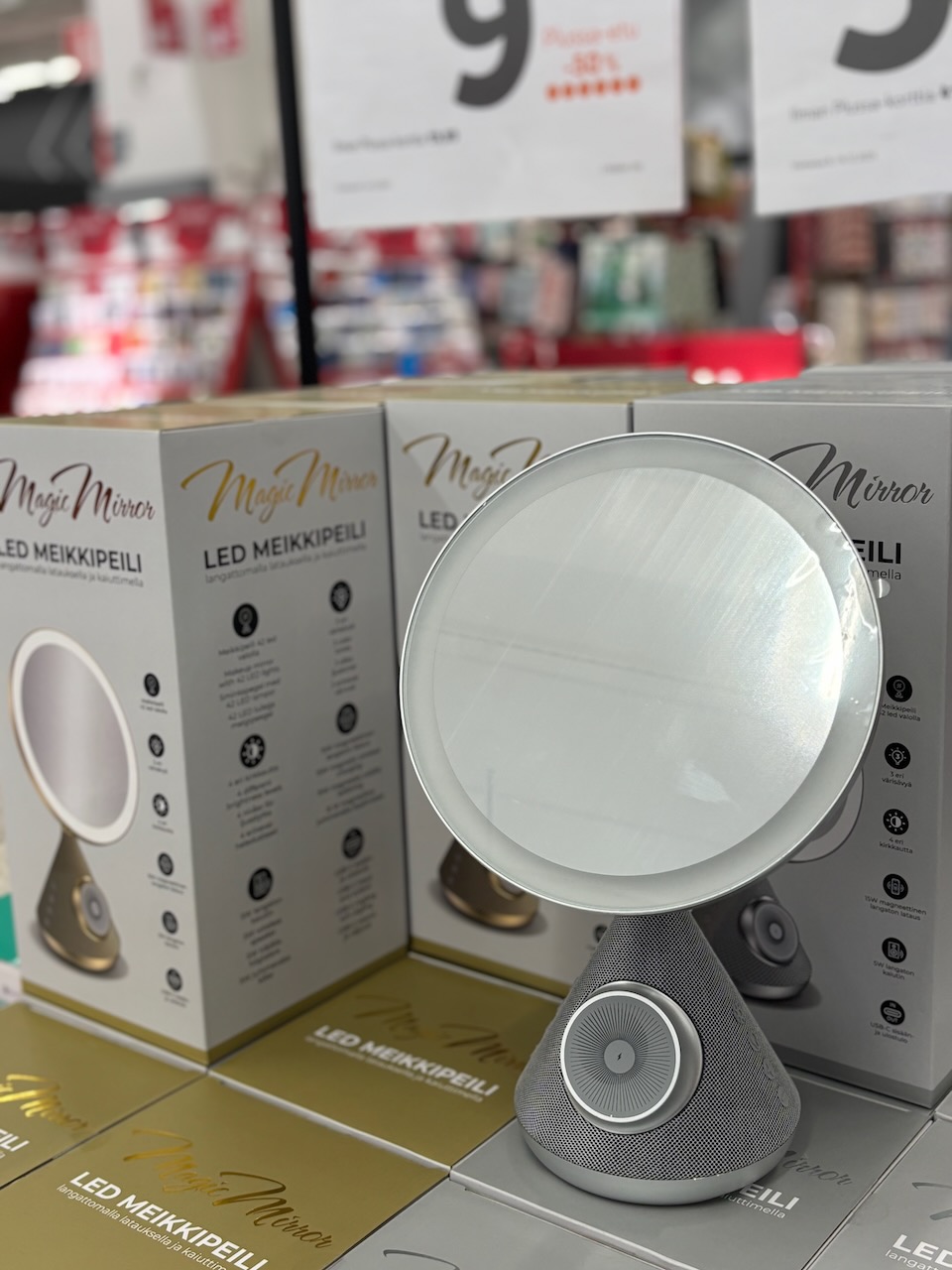 Magic Mirror LED -meikkipeili yhdistää käytännöllisyyden ja pienen ylellisyyden. Langaton lataus ja bluetooth-kaiutin tekevät siitä modernin lahjan meikkaajalle tai teinille.